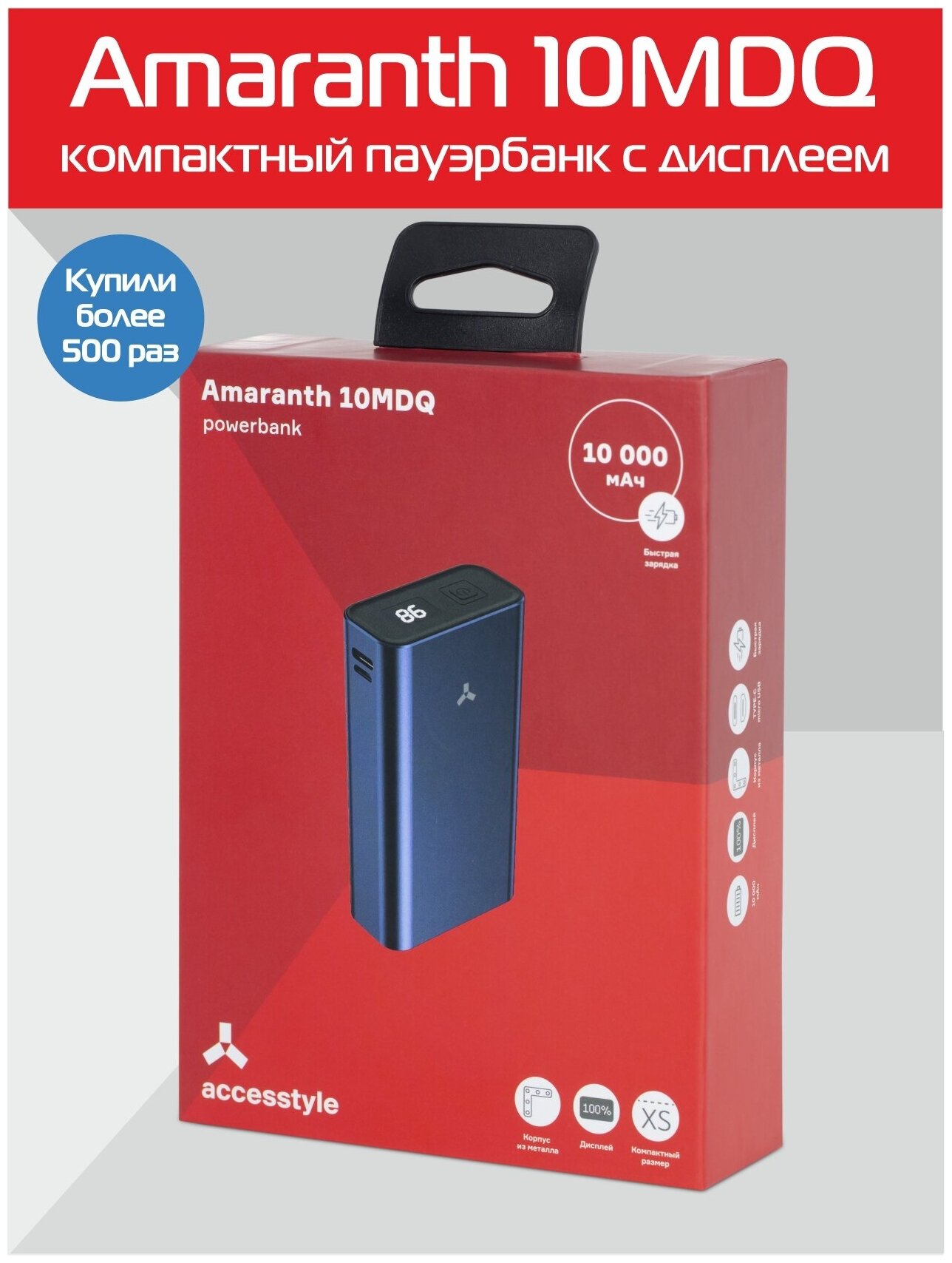 Внешний аккумулятор (Power Bank) ACCESSTYLE Amaranth 10MDQ, синий 4 070 ₽ Подробнее