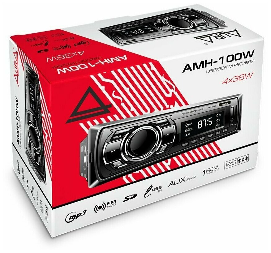 Автомагнитола Автомагнитола с поддержкой SD, AUX, USB,1din - Aura AMH-100W