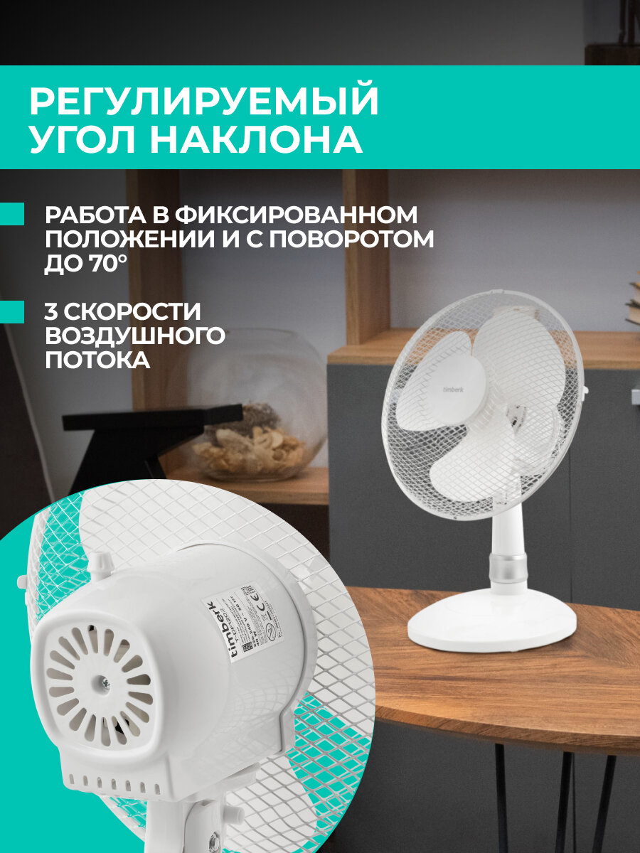 TIMBERK Настольный вентилятор 12", белый T-DF1201