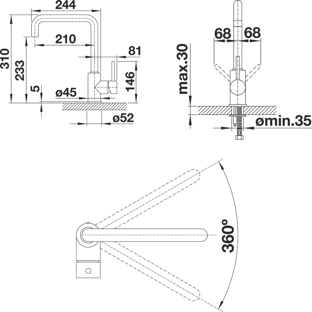 | Диаметр отверстий для установки | 35 мм |