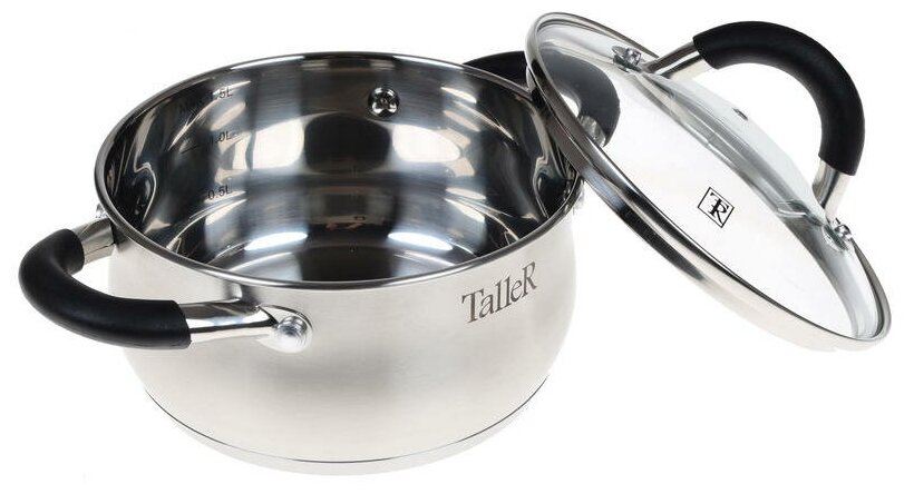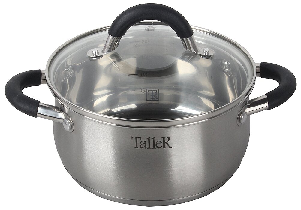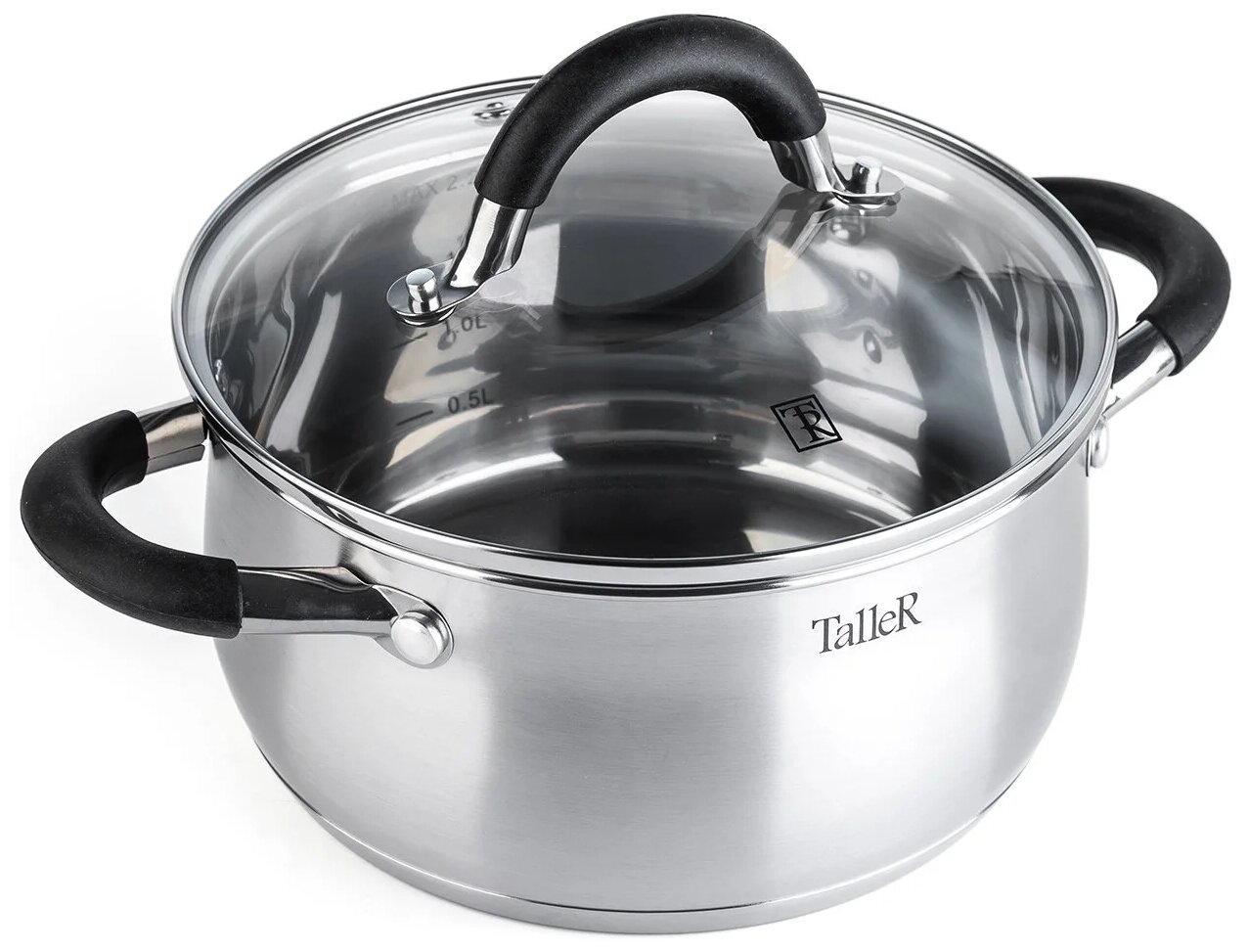 Кастрюля TalleR TR-11044 нерж.сталь, 2,2л, d=18 см, стеклянная крышка, индукция