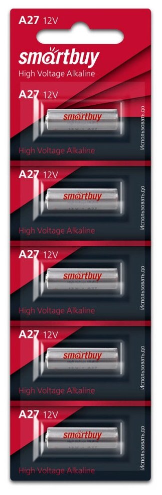 Лучшие цены. Щелочные батарейки SmartBuy A27 12В используются в цифровых фотоаппаратах, фотовспышках, фонариках, брелках автосигнализаций, бесконтактных ключах, беспроводных звонках, игрушках и в других устройствах. В упаковке 5 штук. Магазины в вашем городе.