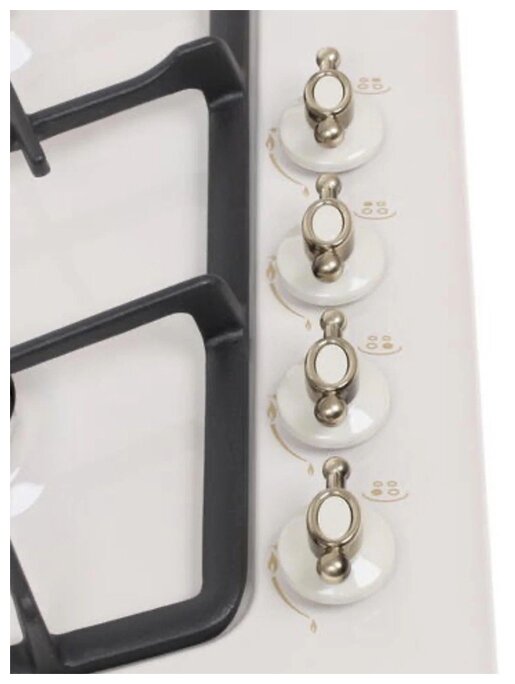 Лучшие цены. Газовая варочная панель Гефест выполнена в кремовом цвете и покрыта прочной эмалью, ширина 59 см. Элементы управления декорированы, нанесен рисунок в ретро-стиле. Несмотря на скромные размеры, панель укомплектована системой газ-контроля, перекрывающего подачу газа при случайном угасании пламени. А чтобы не загасить газовую горелку, предусмотрено фиксированное положение переключателя для экономного горения. Электророзжиг встроен в поворотные ручки и включается автоматически. Магазины в вашем городе.