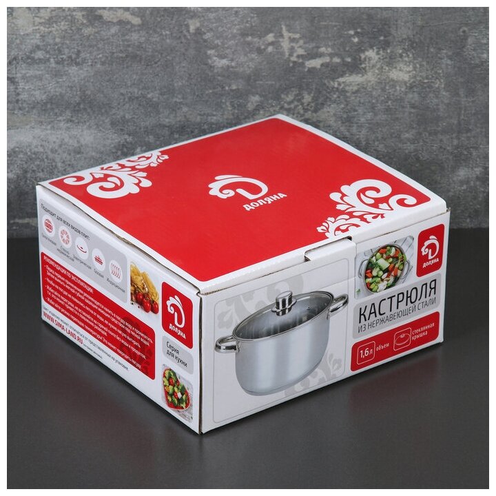 Лучшие цены. Кастрюля из нержавеющей стали Доляна «Гретте» объемом 1,6 литра и диаметром 16 см станет незаменимым помощником на вашей кухне. Толщина стали составляет 0,4 мм, что обеспечивает прочность и долговечность изделия. Особенностью кастрюли является ее многослойное капсулированное дно, благодаря которому посуду можно использовать на индукционной плите. Это позволяет экономить энергию и равномерно распределять тепло по всей поверхности. Магазины в вашем городе.