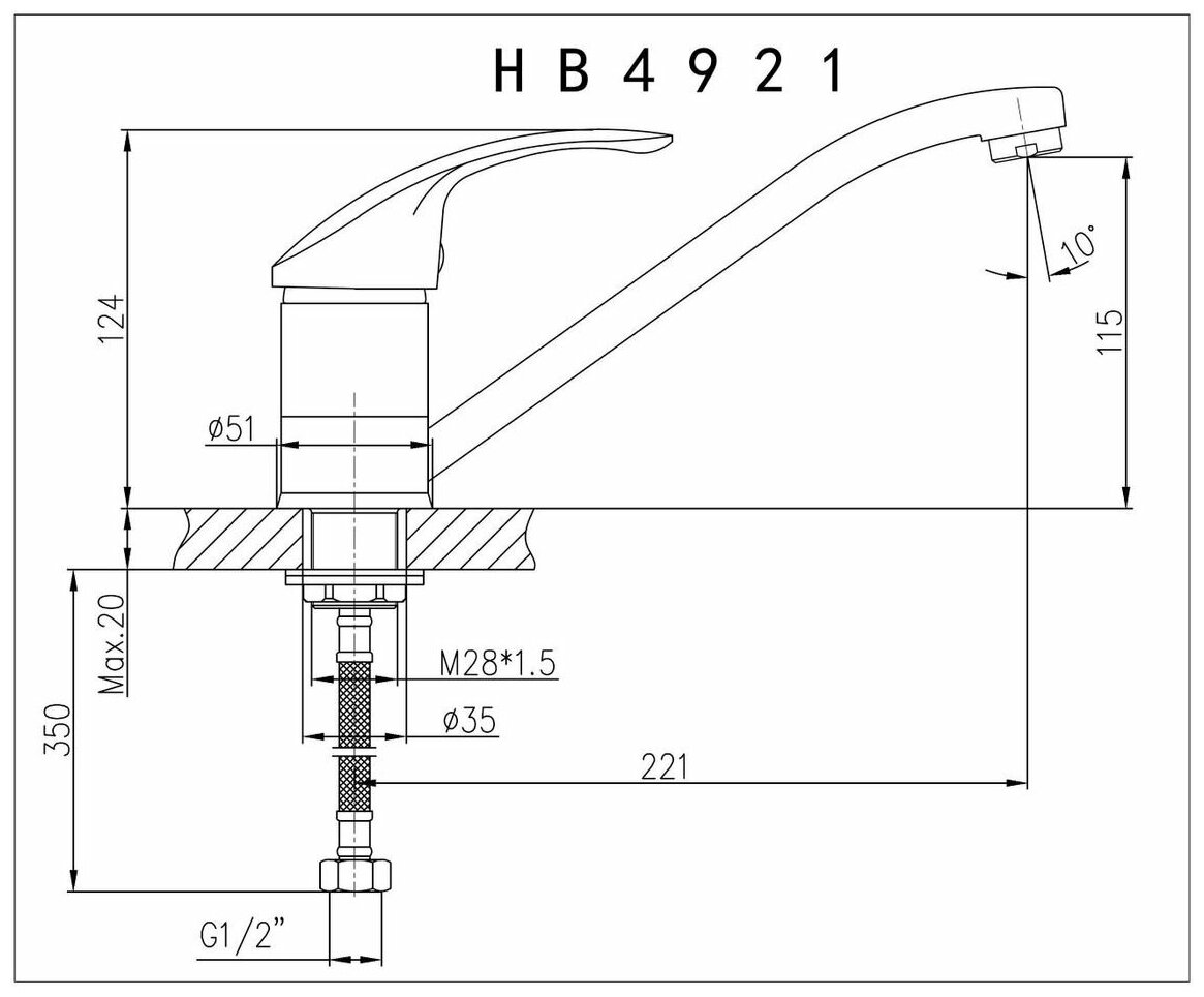 Смеситель HAIBA HB4921-7 для кухни однорычажный, черный