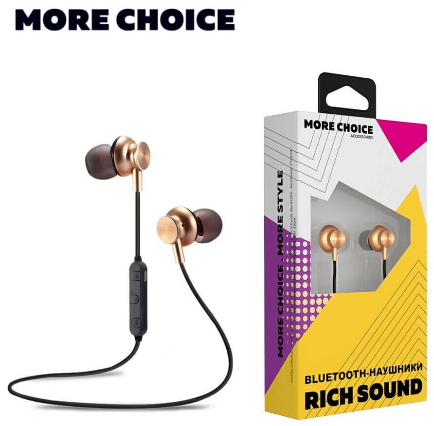Наушники Наушники More choice Bluetooth вакуумные с шейным шнурком BG6 золотой