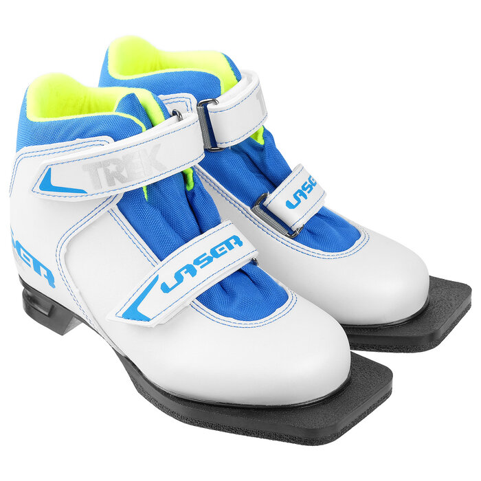 Лучшие цены. Ботинки лыжные TREK Laser NN75 ИК, цвет белый, лого синий, размер 36 Лыжные ботинки начального уровня предназначены для спортивных, туристических путешествий. Подходят для прокатов на лыжных и туристических базах, в школах на занятиях физкультурой. Верх ботинка выполнен из высококачественной искусственной морозоустойчивой кожи толщиной 2,7 мм. Фиксация ноги осуществляется двумя фиксирующими ремнями на липучках для быстрого и лёгкого надевания ботинка. Магазины в вашем городе.