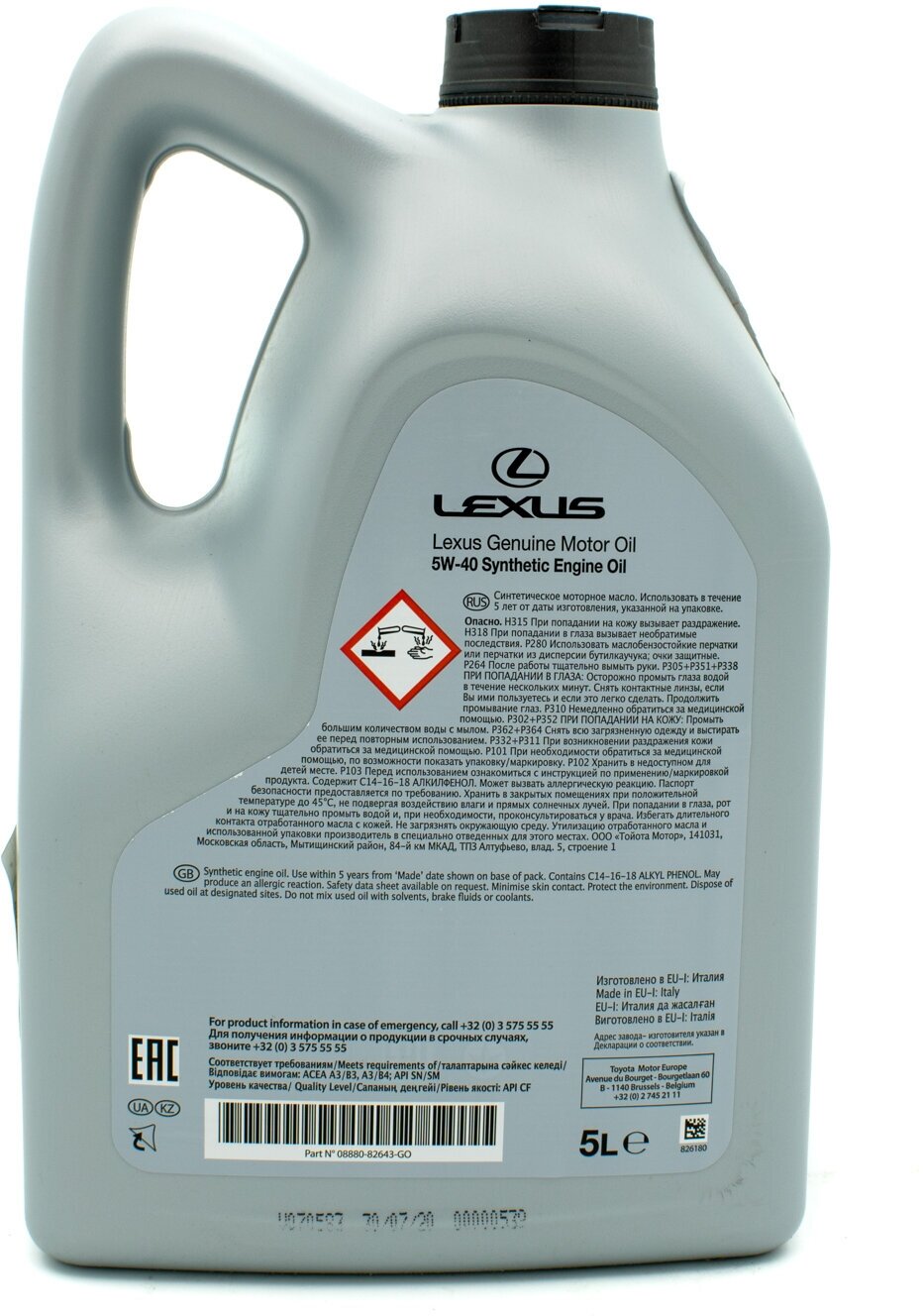 Масло моторное lexus 5w40 5л Toyota 0888082643GO