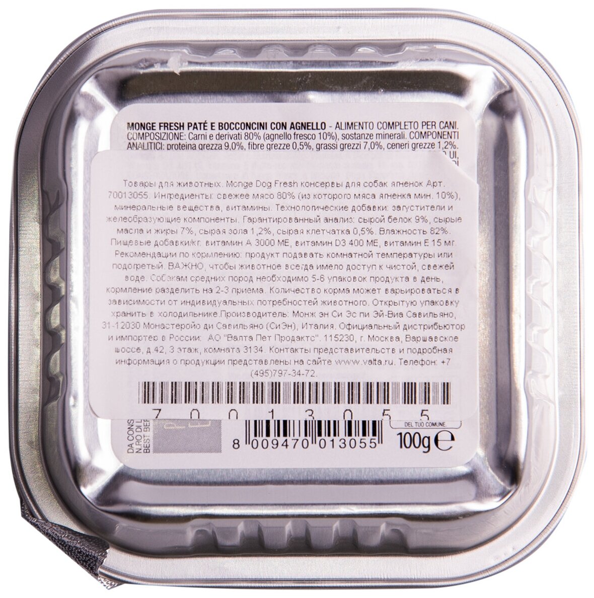 Корм для собак MONGE Fresh ягненок конс. 100г (упаковка - 32 шт)