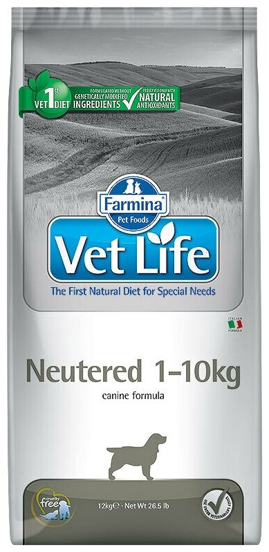 Сухой корм Farmina Vet Life Natural Diet Dog Neutered 1-10kg для стерилизованных/кастрированных собак весом до 10кг - 2 кг