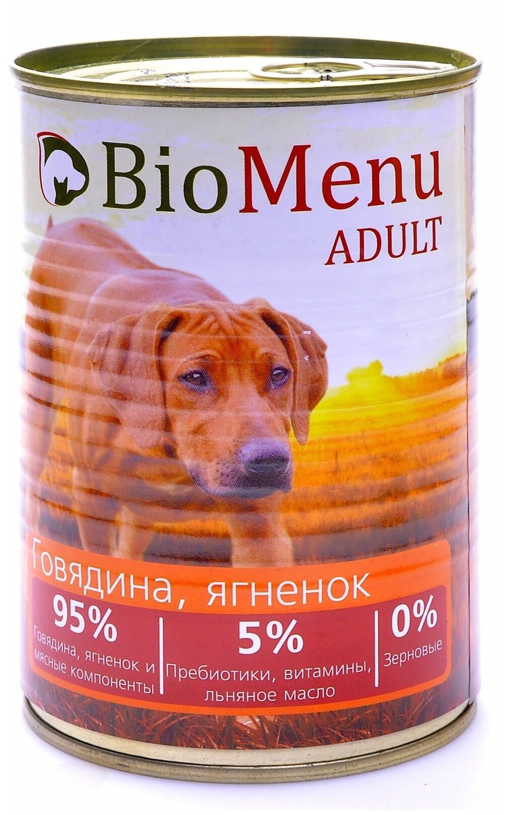 BioMenu ADULT Консервы для собак Говядина/Ягненок 95%-мясо 410г х 12 шт