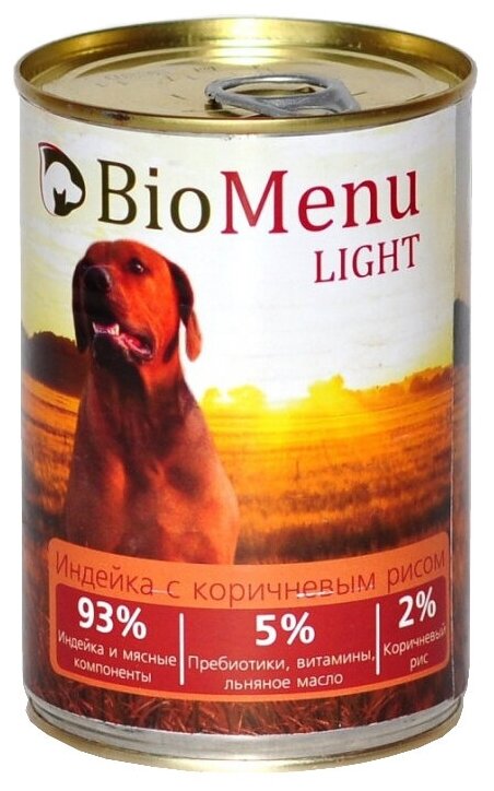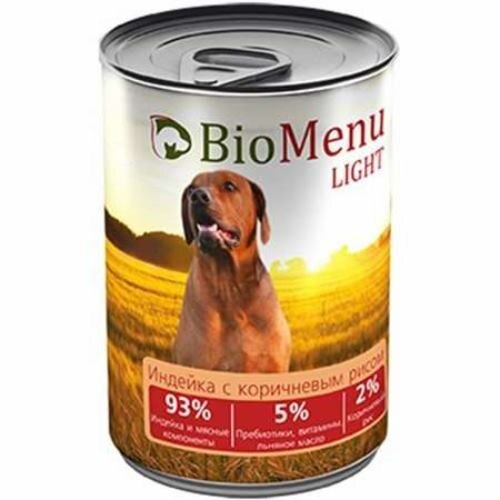 Корм для собак Biomenu Light Консервы для Собак Индейка с Коричневым Рисом 93%-Мясо 12х410г