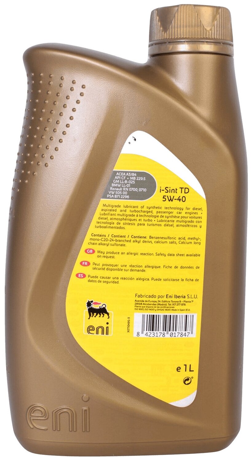 ENI ENI 5W40 I-SINT TD/60 Масло моторное синтетическое 60л - для легковых автомобилей API CF, ACEA A3/B4, VW 505.00, MB 229.5 BMW LL-01, RENAULT RN 0700/0710, GM LL-B-025, PSA B71 2296 1шт 61 520 ₽ Подробнее