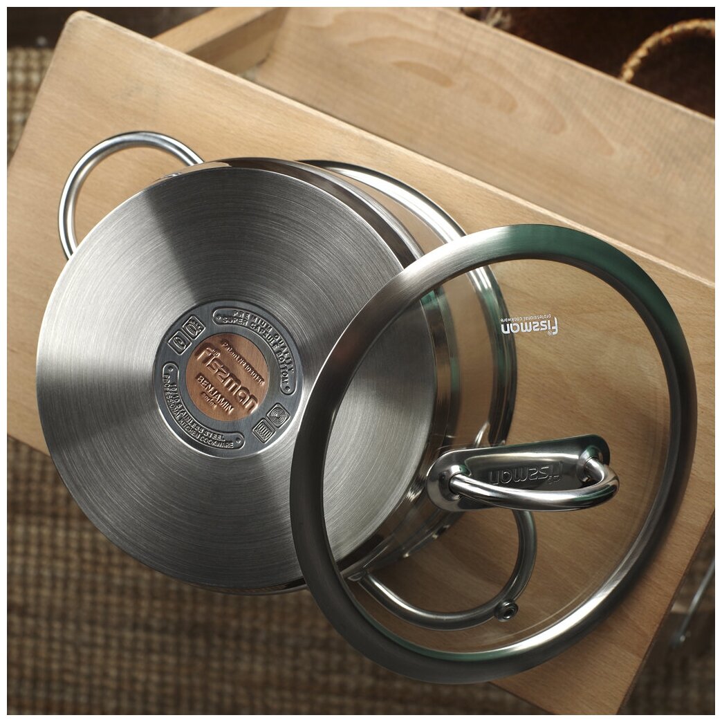 Лучшие цены. Компания FISSMAN ценит своих покупателей и относится к качеству своей продукции с особым вниманием. Посуда серии BENJAMIN сделана из самой безопасной высококачественной нержавеющей стали марки 18/10 (INOX304), обладает жаростойкостью и коррозийной прочностью, очень легка в уходе. Многослойное капсульное дно обеспечивает равномерный нагрев и распределение тепла благодаря алюминиевой прослойке, раскрывая вкусовые качества блюда и сохраняя все полезные свойства продуктов, а индукционный слой делает посуду. Магазины в вашем городе.