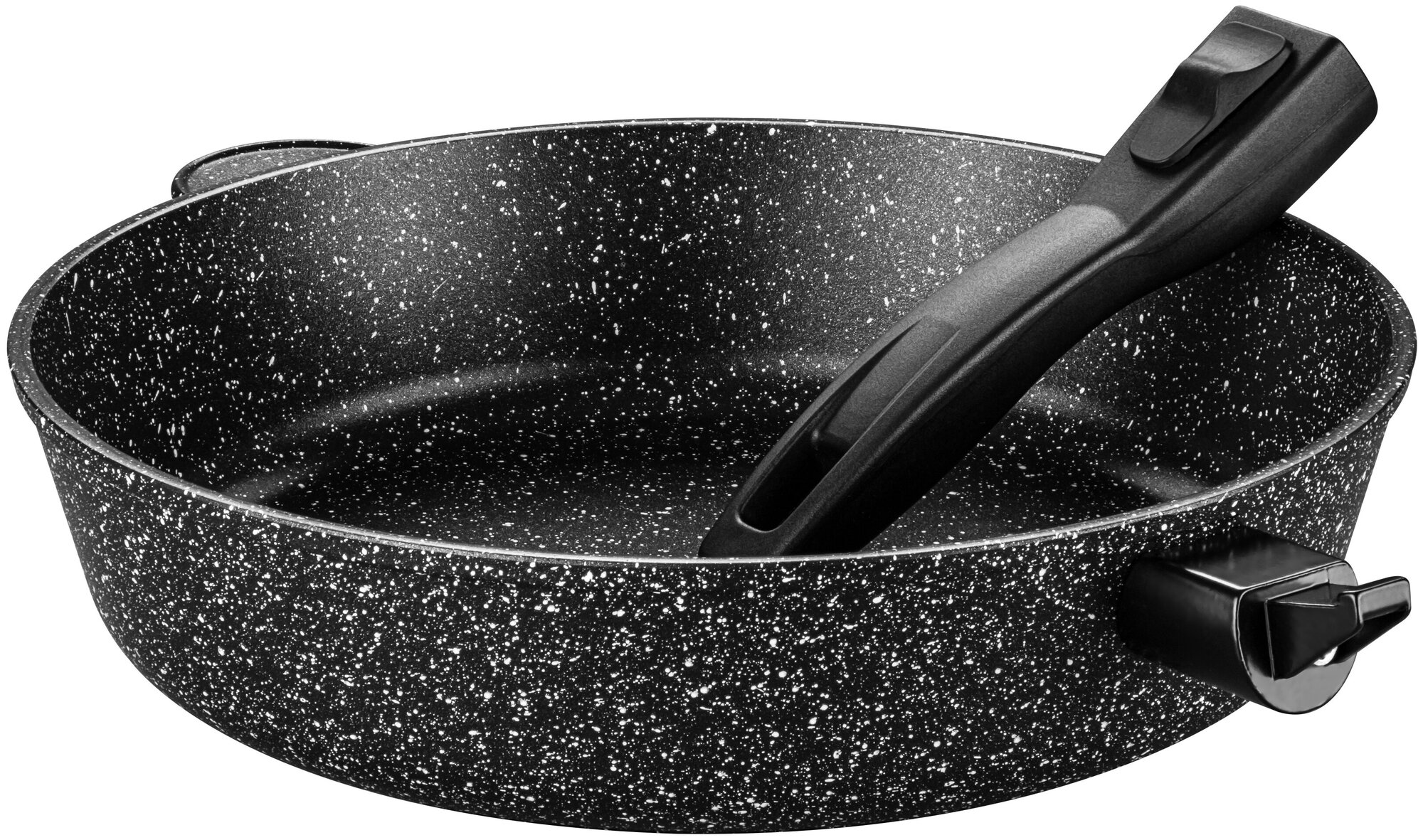 Сковорода глубокая с крышкой Elan Gallery гармония вкуса "Черный мрамор" 120138, 28см, съемная ручка
