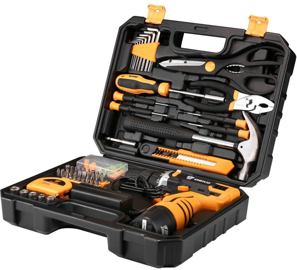 Дрель-шуруповерт аккумуляторная DEKO DKCD12FU-Li 1*12В 1.5Ач, набор 104 инструмента