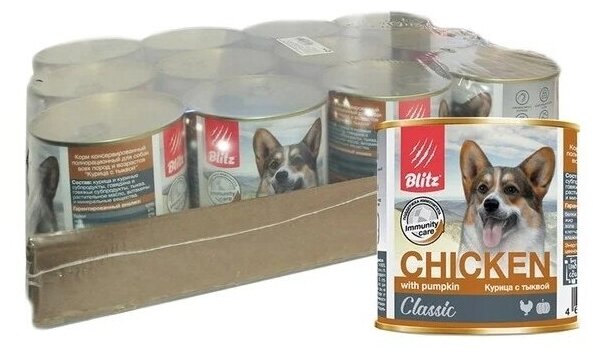 Blitz Classic консервы для собак всех пород Курица и тыква, 400 г. упаковка 24 шт
