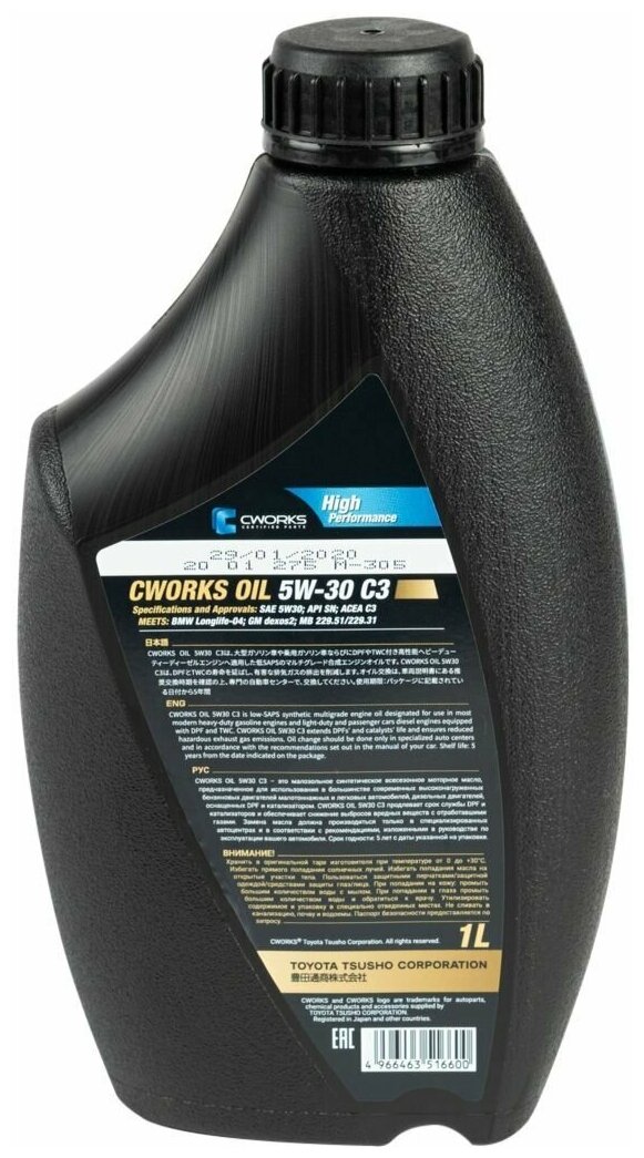 CWORKS A130R2004A акция Масло моторное, 5W-30 C3, SN, CF, комплект (4л + 1л)