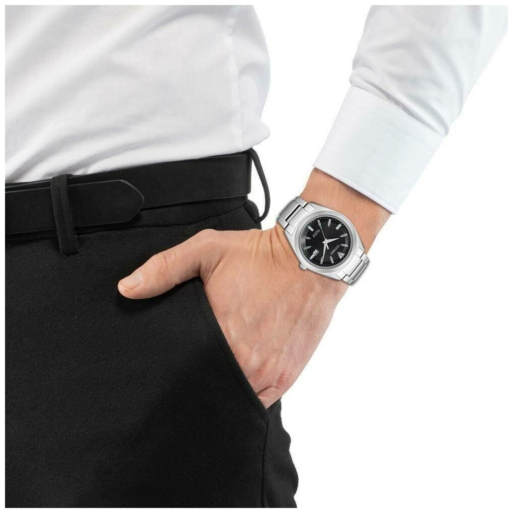 Лучшие цены. Классические черты этих часов оценят элегантные и успешные мужчины. Eco-Drive. Система Eco-Drive не требующая замены батарейки. Питание от солнечной энергии, запас энергии на 240 дней. Функция индикации заряда (EOL) E. O. L. End of Life – система индикации окончания заряда батарейки. В случае, если заряд элемента питания ослабевает, секундная стрелка начинает двигаться скачками (через деления). Вплоть до окончания срока службы элемента питания часы продолжают работать и показывать точное время. Магазины в вашем городе.