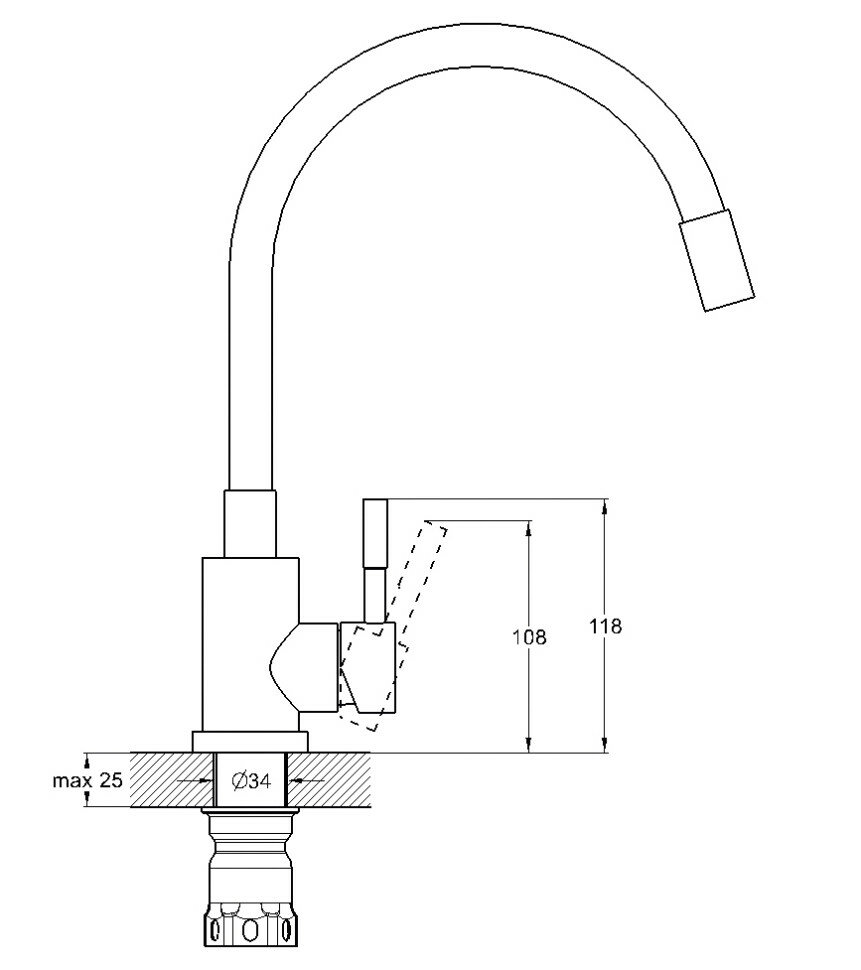 G-lauf/Solone EZA4-F090GY, Смеситель для кухни с гибким изливом 35 мм, нержавеющая сталь, гайка