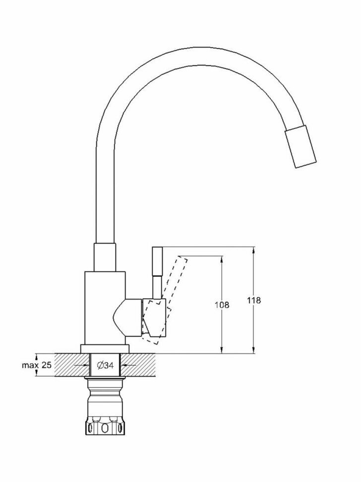 G-lauf/Solone EZA4-F090KB, Смеситель для кухни с гибким изливом (керамический картридж 35 мм, нержавеющая сталь, гайка)
