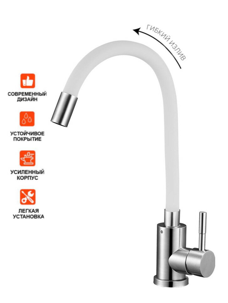 G-lauf/Solone EZA4-F090GN, Смеситель для кухни с гибким изливом (керамический картридж 35 мм, нержавеющая сталь, гайка)