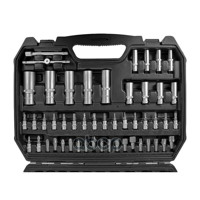 Лучшие цены. Универсальный набор инструмента изготовлен из высококачественной хромованадиевой стали, обладает высокой прочностью, устойчив к коррозии и легко очищается от грязи. Кейс из прочного пластика с железными застежками надежно фиксирует инструменты. Комплектация набора: - Головки торцевые 1/2": 10, 11, 12, 13, 14, 15, 16, 17, 18, 19, 20, 21, 22, 24, 27, 30, 32 мм. - Головки торцевые 1/4" внешний TORX: E4, E5, E6, E7, E8 мм. - Головки торцевые удлинённые 1/2": 14, 15, 17, 19, 22 мм. Магазины в вашем городе.