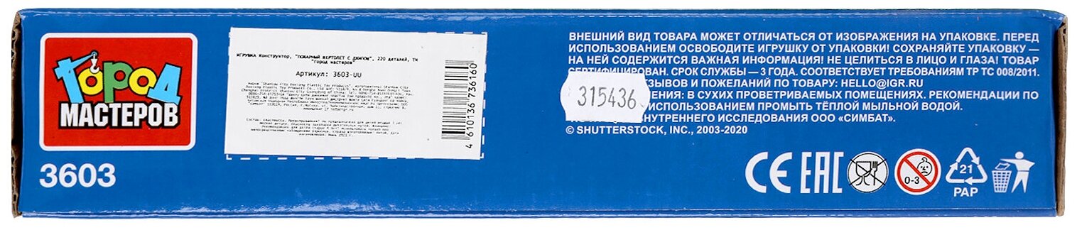 Конструктор 315436 Конструктор пожарный вертолет С джипом, 220 дет. Город мастеров