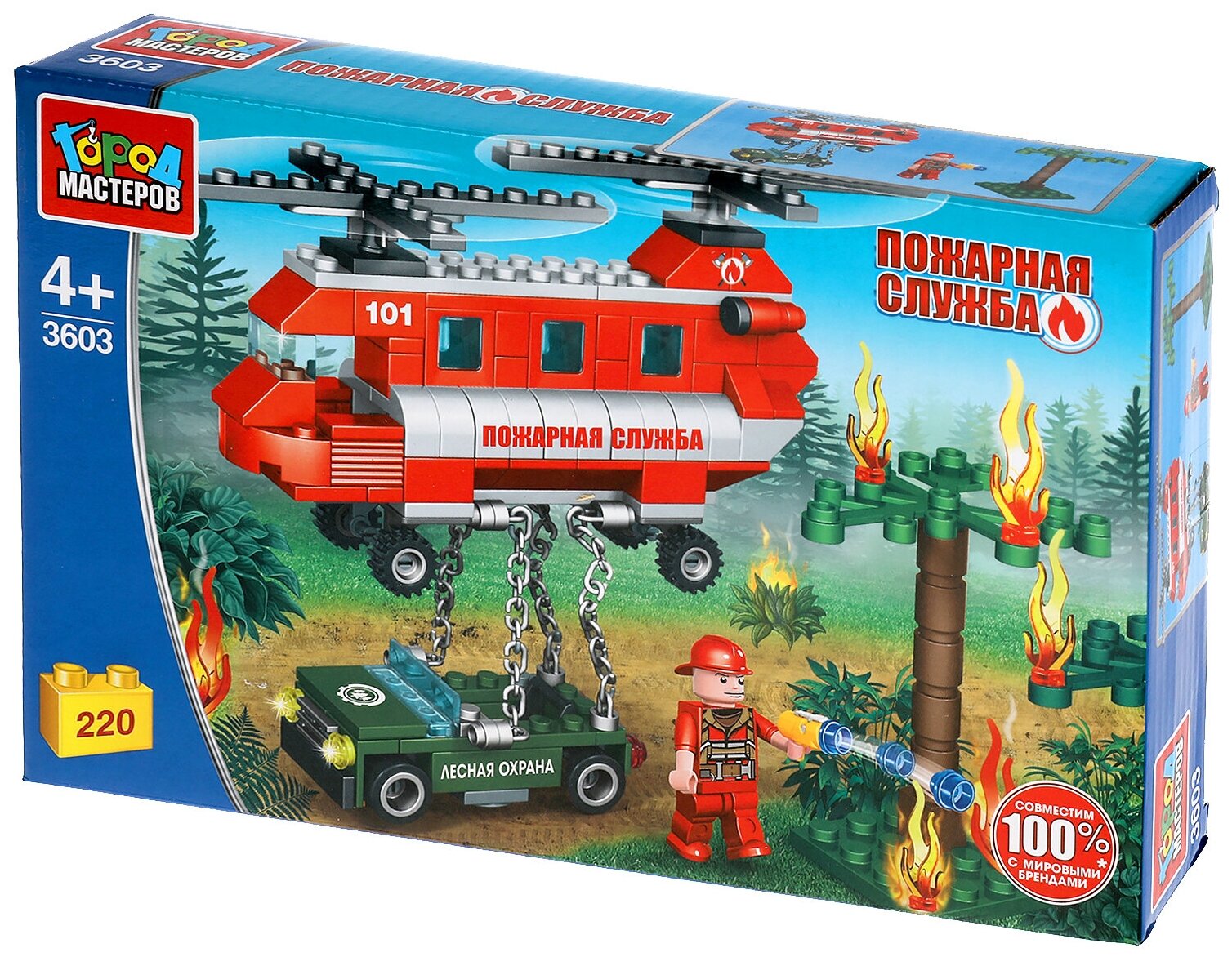 Лучшие цены. Конструктор «Пожарный вертолёт с джипом» из серии «Пожарная служба» ТМ «Город мастеров» понравится маленьким спасателям. Особенности и комплектация: - 220 деталей - фигурка - совместим с моделями конструкторов мировых брендов - все детали легко и плотно соединяются между собой С помощью этого занимательного конструктора ваш ребёнок может собрать реалистичную модель пожарного вертолёта, джип и помочь храброму пожарному эвакуировать машину лесной охраны из пожара. Магазины в вашем городе.