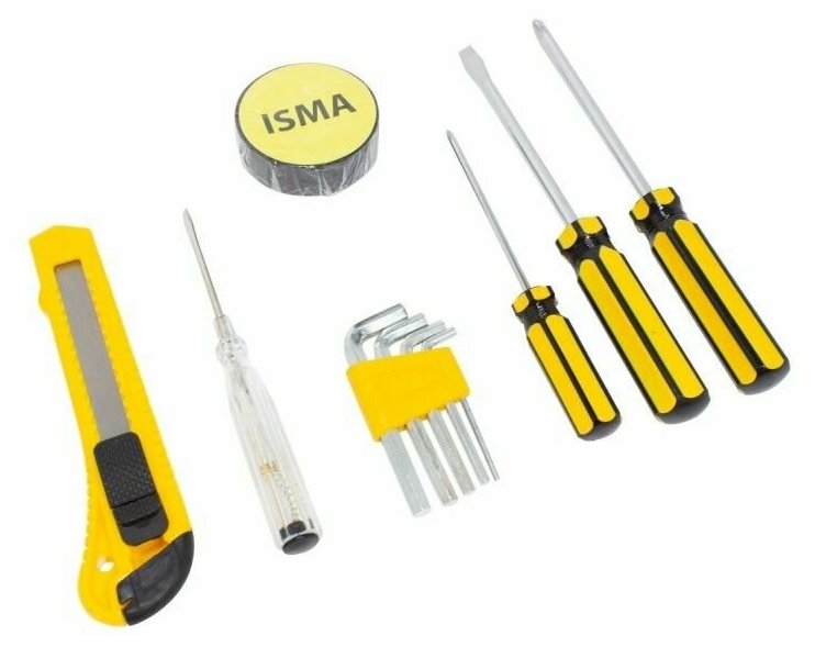 Наборы инструментов Набор инструментов ISMA TOOLS с плоскогубцами, ножом, рулетками, изолентой, молотком 9 предметов