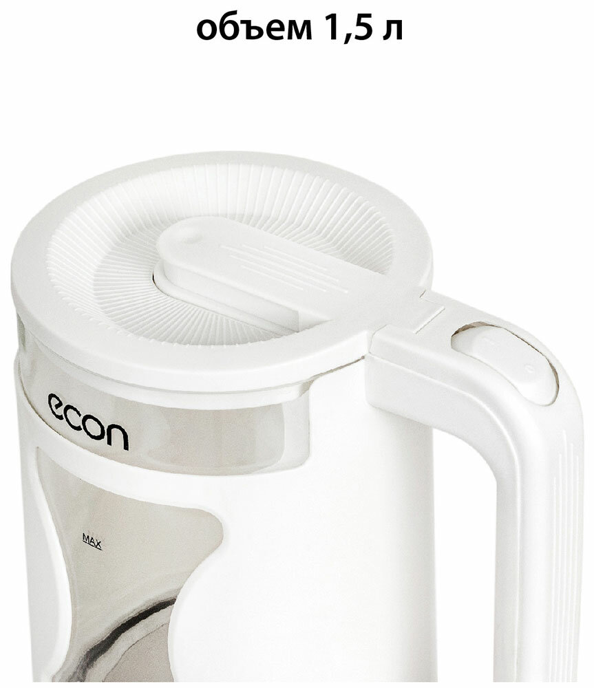 Econ Чайник электрический Econ ECO-1505KE, 1500 Вт, стекло, 1.5 л, белый