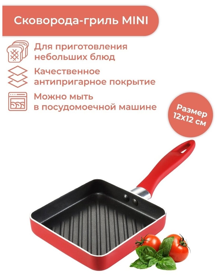 Лучшие цены. Сковорода гриль или сковорода для стейков — это возможность дома приготовить блюдо таким образом, что, попробовав его вы бы почувствовали себя на пикнике. Незабываемый вкус, аромат и внешний вид «от решетки» не оставит без эмоций вас и ваших гостей, а сама пища будет здоровой и полезной для организма. Сковорода гриль с антипригарным покрытием, коллекции PRESTO MINI — это стильный и модный гриль от компании Tescoma, предназначенный приготовления небольших блюд, который позволит вам открыть целую нишу. Магазины в вашем городе.