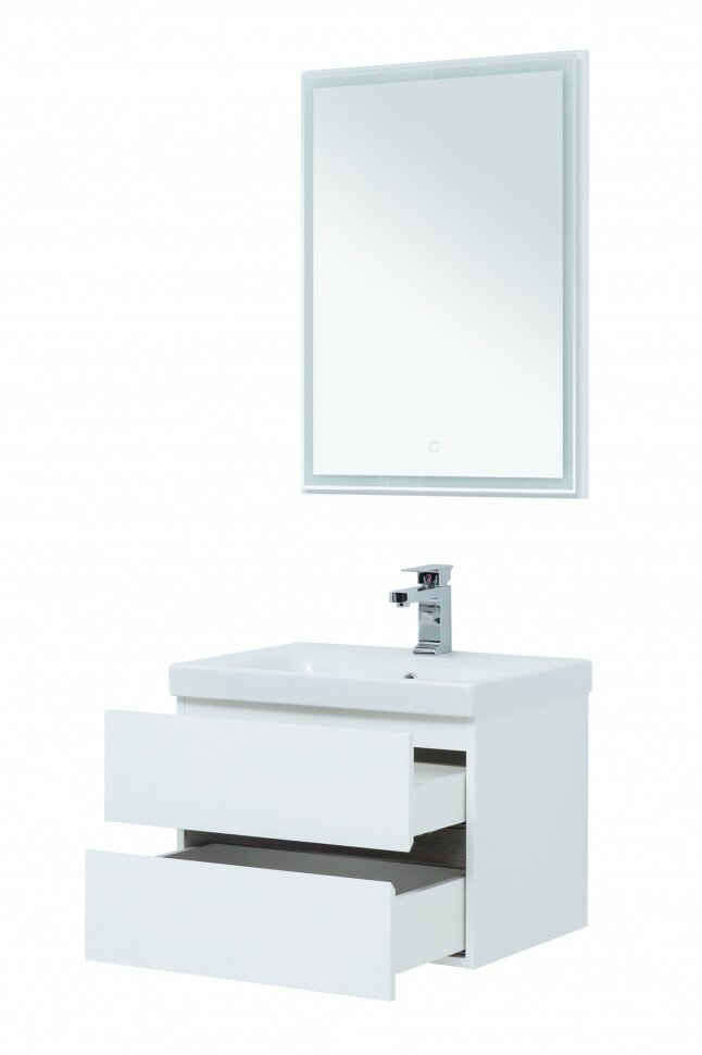 Тумба под умывальник Тумба под раковину Aquanet Беркли 50 см 254288 белый глянцевый/дуб рошелье подвесная 2 ящика