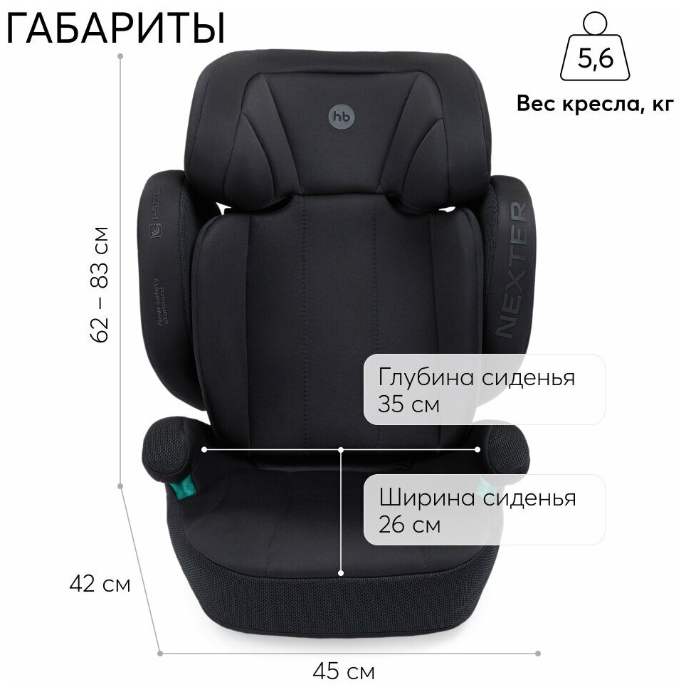 Автокресло детское Happy Baby с креплением Isofix Nexter группы 2/3, 15-36 кг, рост 100-150 см, черное