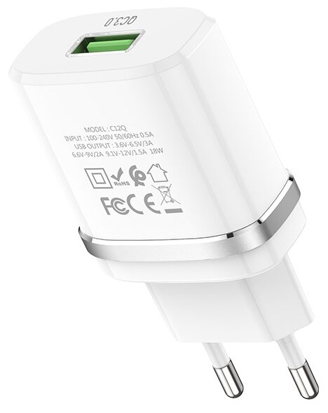 Зарядное устройство HOCO c12Q Smart QC3.0, один порт USB, 5V, 3.0A, белый