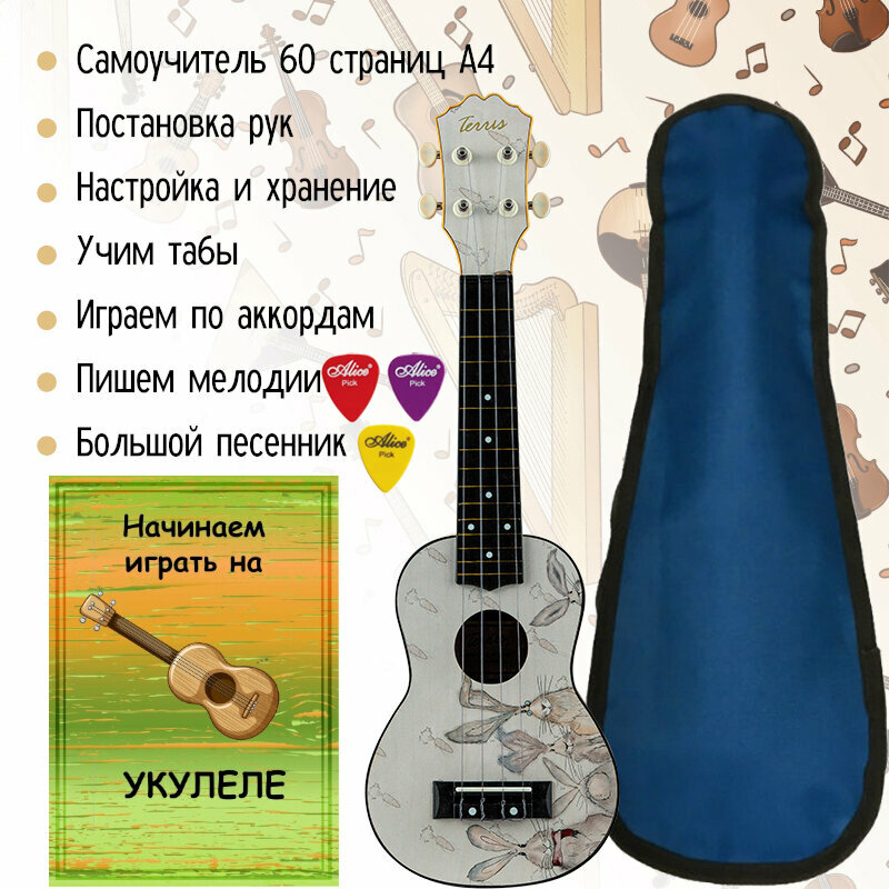 Музыкальный инструмент TERRIS Гитара гавайская Укулеле сопрано PLUS-70 BUNNY DNT-62334