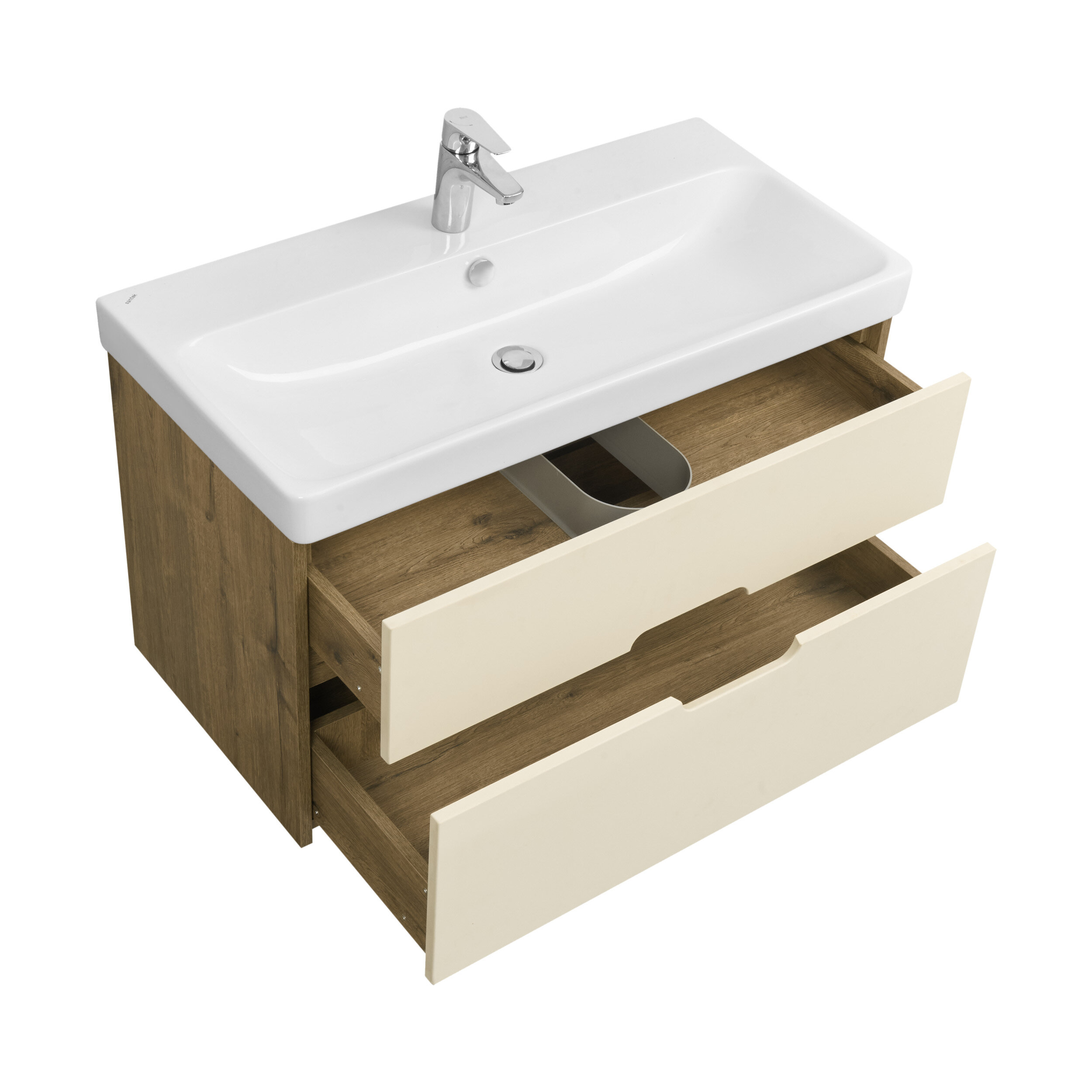 Тумба под раковину AQUATON Оливия 90 подвесная Бежевый/Дуб веллингтон (1A254401OLVG0)