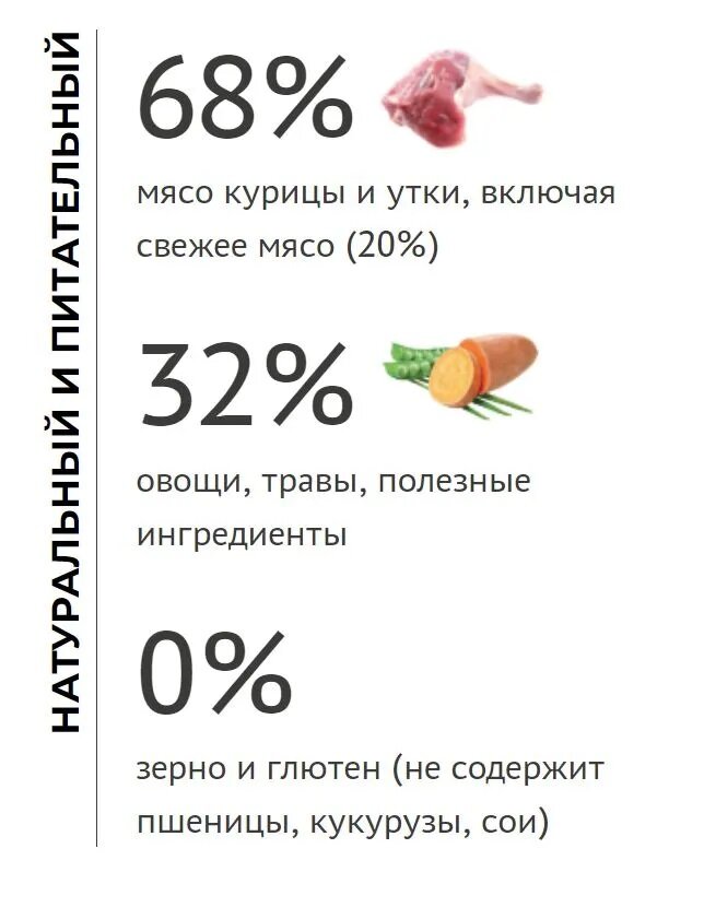 | Ингредиенты | мясо птицы, злаки, овощи, яйца, рыба, витамины, минералы |