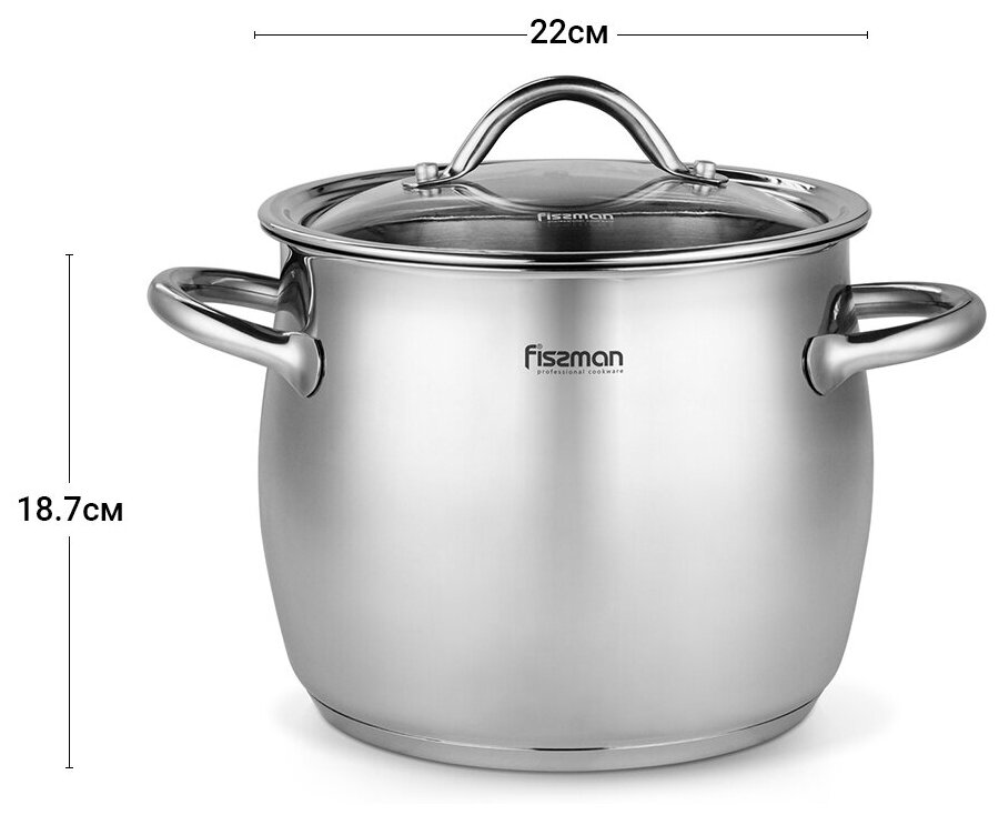 Кастрюля Кастрюля Fissman VIVIEN 22x18,7 см / 7,7 л со стеклянной крышкой (нерж.сталь) (5521)