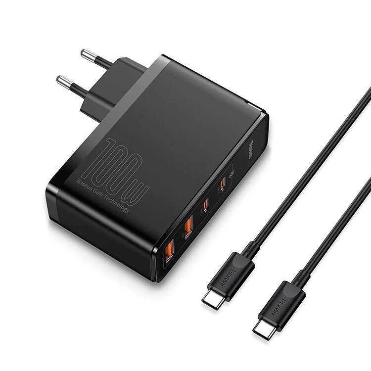 Сетевое зарядное устройство c 2 USB/2 type-c Baseus, CCGAN2P-L01, 100W, Quick Charger, черный