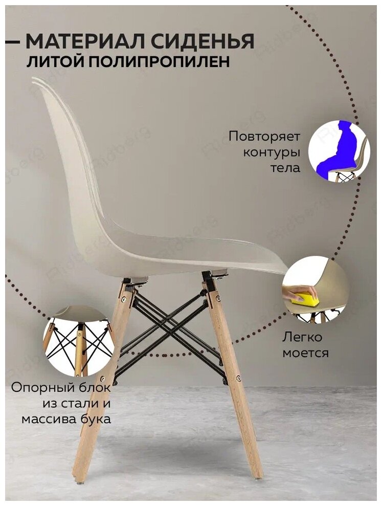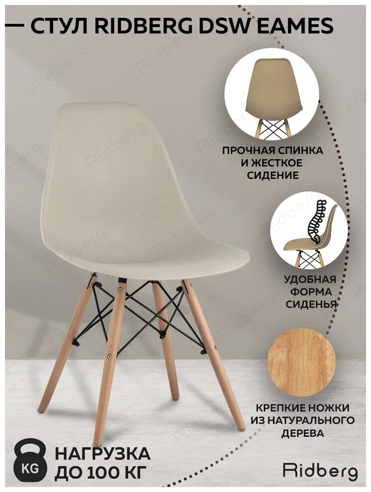 Лучшие цены. RIDBERG DSW EAMES представляет собой удобный и прочный стул, который украсит как квартиру или дом, так и офис или кафе. Модель отличается минималистичным дизайном и глубокой посадкой с поддерживающей спинкой. В комплекте поставляется два стула. Дизайн Сиденье RIDBERG DSW EAMES выполнено из прочного литого полипропилена, а опорный блок сочетает в себе сталь и массив бука. Такая конструкция позволяет выдерживать до 100 кг нагрузки. Магазины в вашем городе.