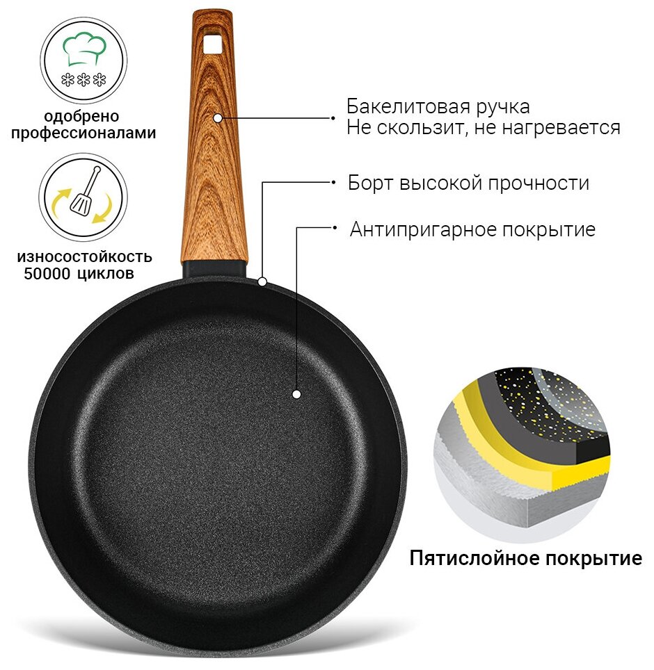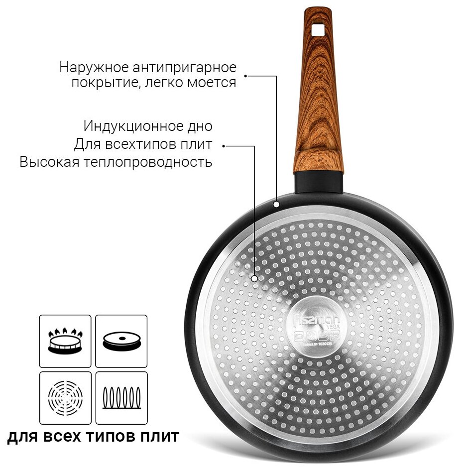 14960 FISSMAN Глубокая cковорода VEGA 24x6,8см, ручка с двойной фиксацией (алюминий с антипригарным покрытием Greblon C3+PEEK) Ручка-бакелит с покрытием «софт тач»; Индукция