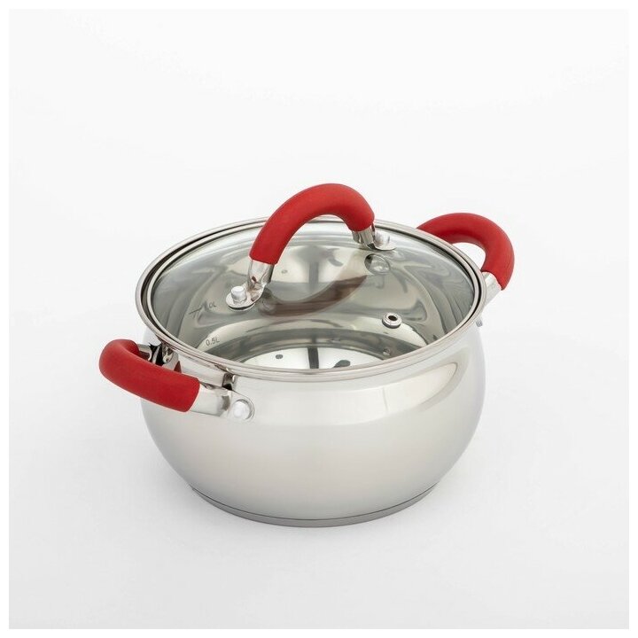 Лучшие цены. ОсобенностиКапсульное дно обеспечивает быстрое распределение тепла. Ручки с силиконовым покрытием не скользят и не обжигают руки. Стеклянная крышка оснащена пароотводом. Корпус изготовлен из полированной нержавеющей стали AISI 201. Толщина металла: 0,5 мм. Подходит для всех типов плит. Можно мыть в посудомоечной машине. Магазины в вашем городе.