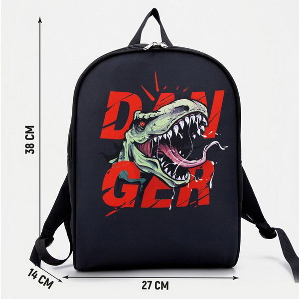Рюкзак Рюкзак молодёжный 27х14х38, Danger, динозавр, чёрный