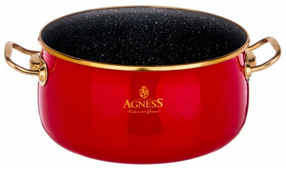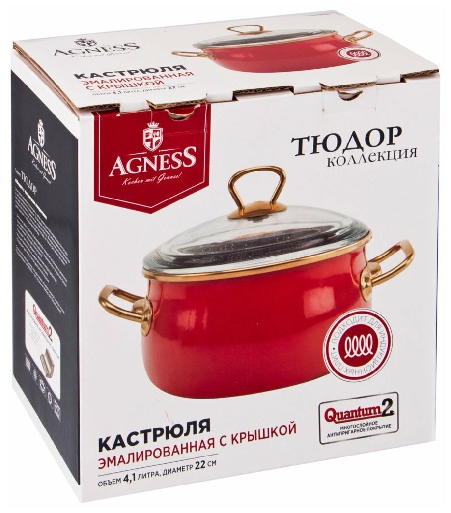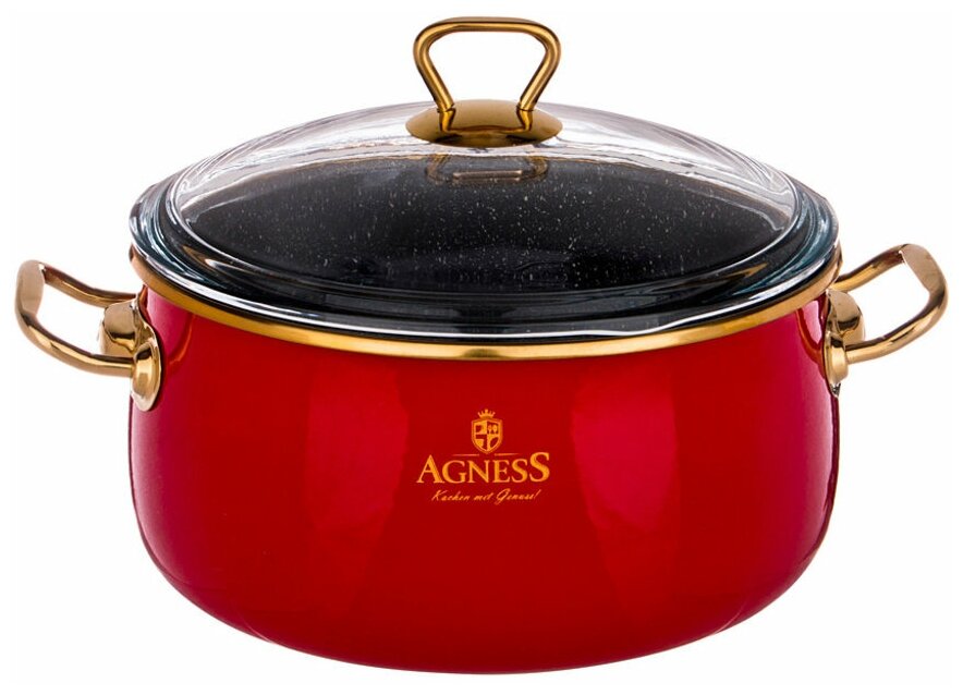 Лучшие цены. Кастрюля эмалированная со стекл. крышкой и антипригар. мраморным покрытием, 22см / 4,1л Agness. Серия Тюдор идеально сочетает преимущества эмалированной посуды и посуды с антипригарным покрытием. Благодаря внешнему эмалированному покрытию посуда устойчева к царапинам и легко моется. Внутреннее антипригарное покрытие позволяет использовать посуду не только для варки, а также для тушения и обжаривания блюд. Магазины в вашем городе.