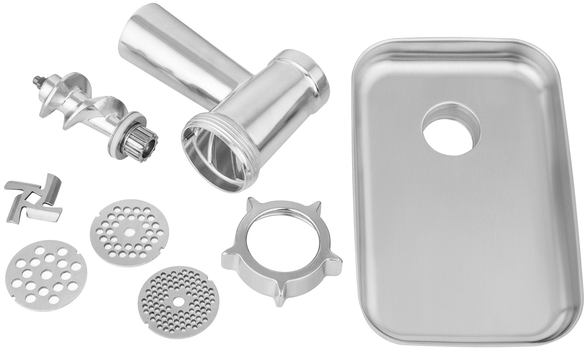 | Аксессуары | венчик для взбивания, насадка / крюк для замеса теста, лопатка для перемешивания (биттер), 2 диска для фарша |