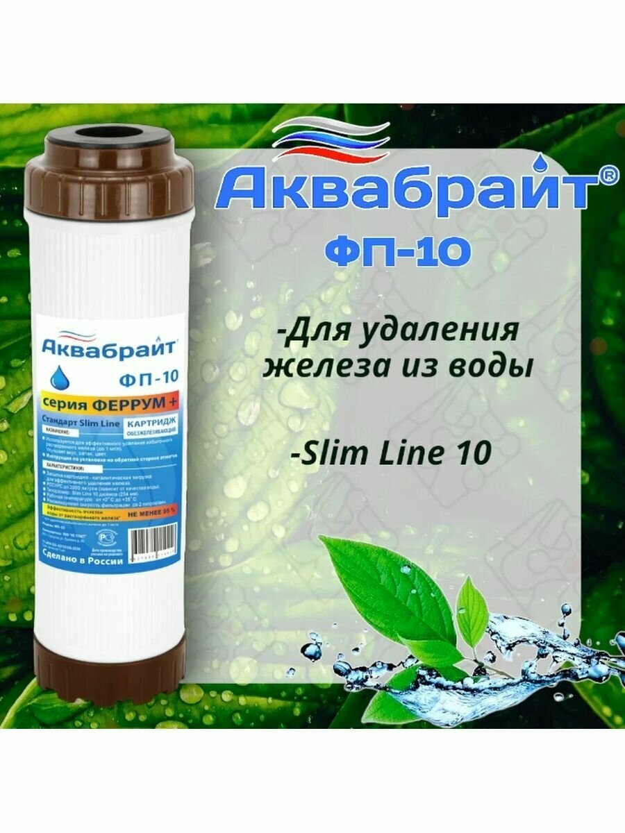 Картридж для воды Картридж 10 Slim ФП Феррум + удаление железа Аквабрайт