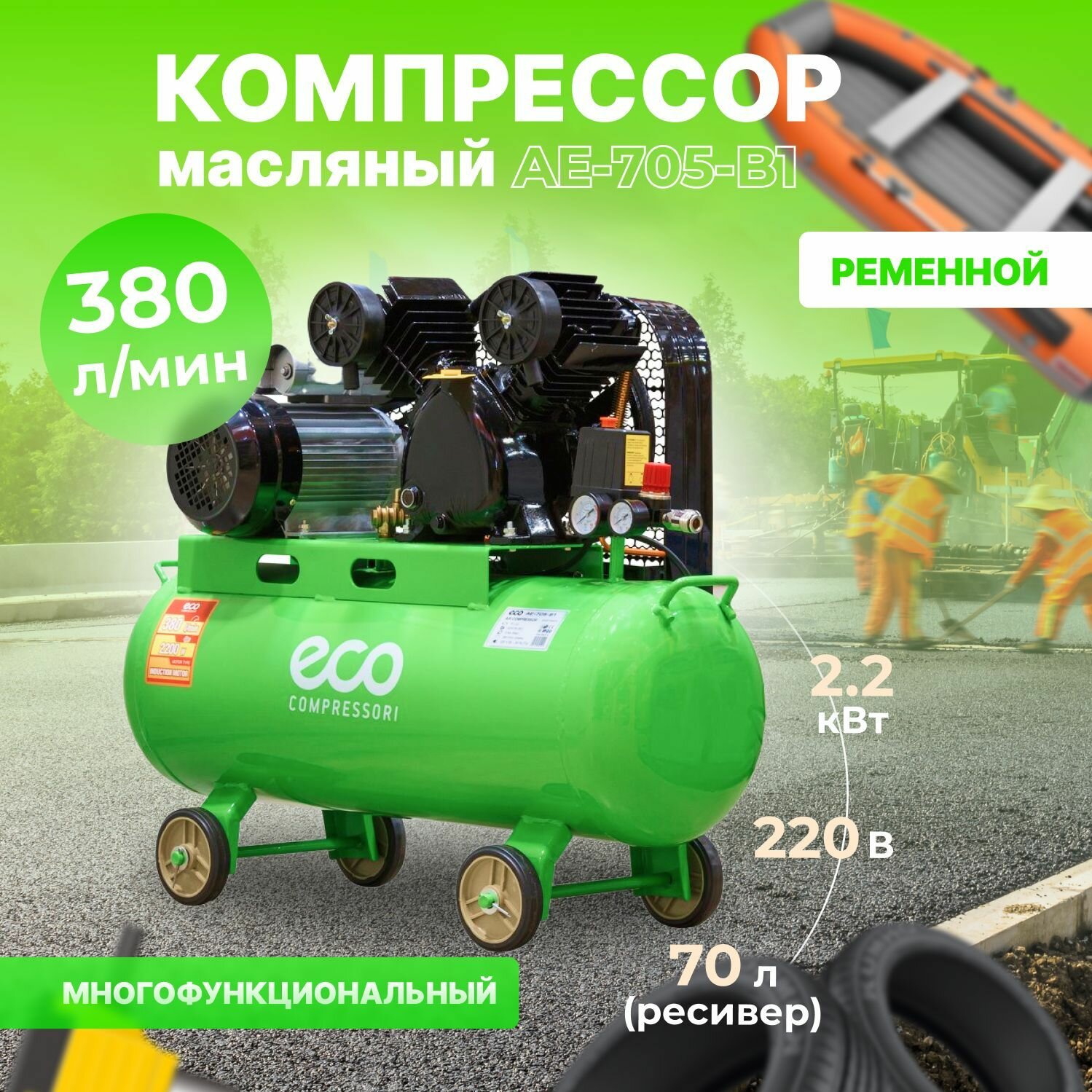 Компрессор ECO AE-705-B1 (380 л/мин, 8 атм, ременной, масляный, ресив. 70 л, 220 В, 2.20 кВт) (AE-705-B1)