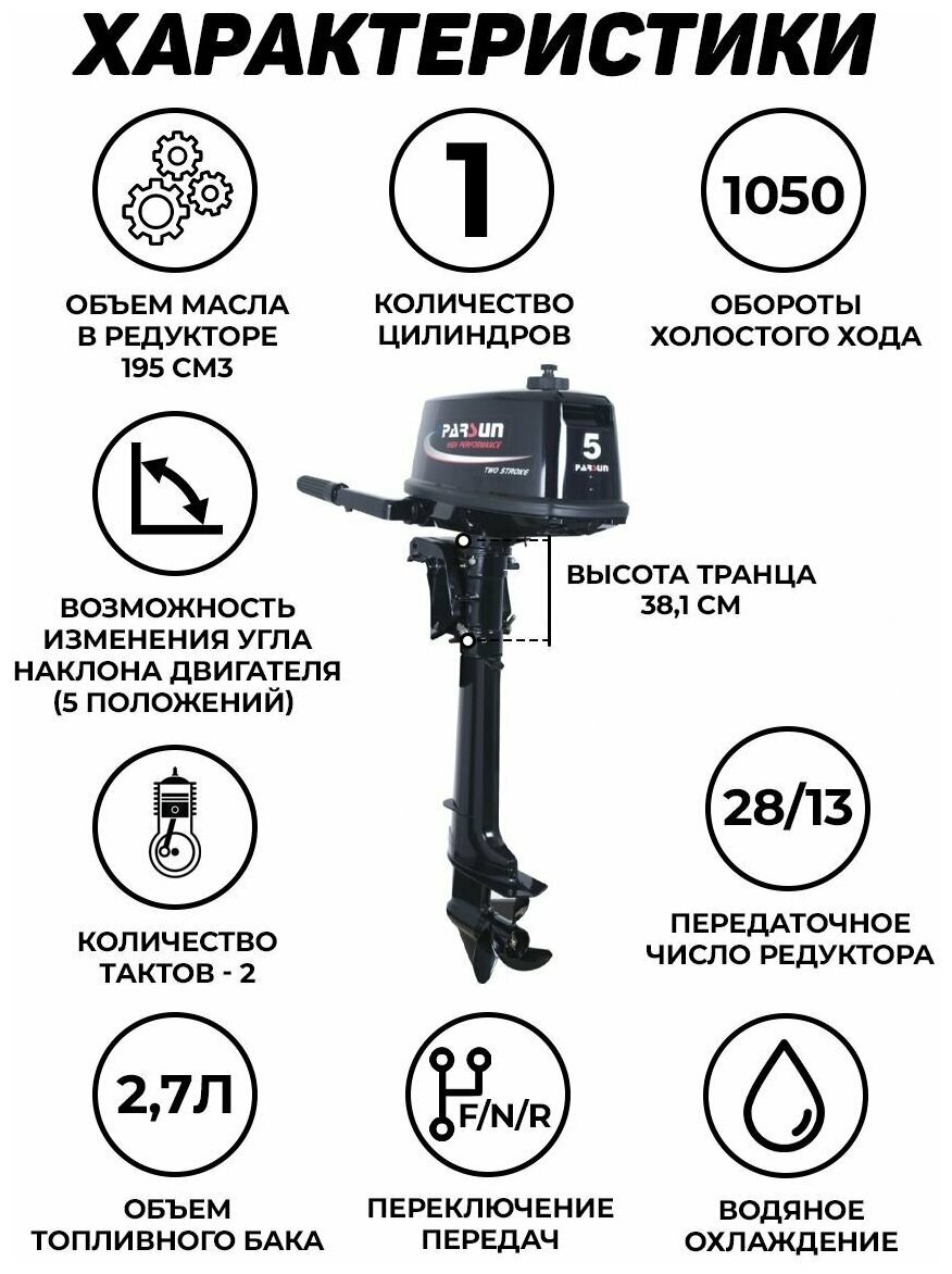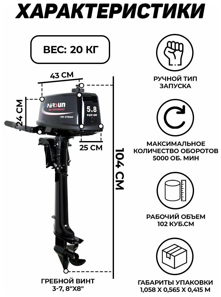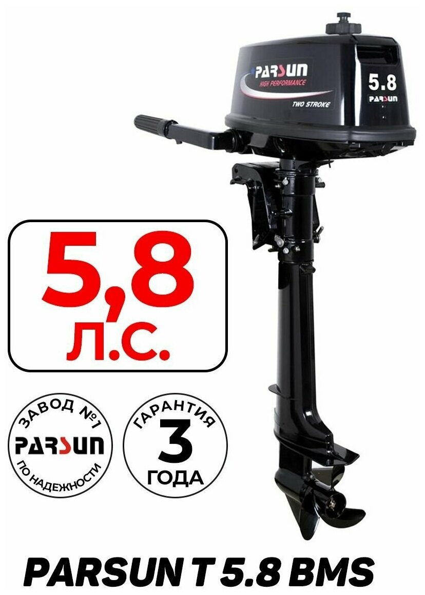 Лодочные моторы Бензиновый лодочный мотор PARSUN T 5.8 BMS, 102 куб.см