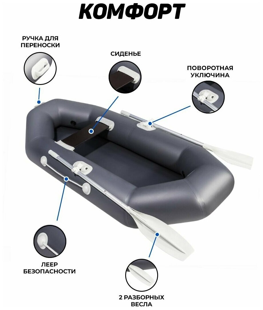 Лодка надувная для рыбалки Барс-230, ПВХ, одноместная, графит